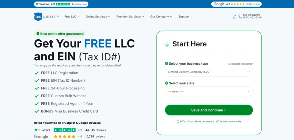 If you want free formation and value speaking to a real person on the phone, Inc Authority is a strong choice. It is especially good for first time entrepreneurs who want guidance.